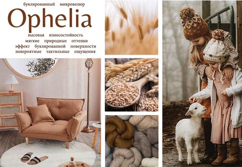 Мебельный микровелюр Ophelia довольно прост в уходе – загрязнения можно удалить влажной губкой или специальной салфеткой. Буклированная поверхность коллекции не подвержена затяжкам, причина тому – искусная имитация петель, на деле же это прочный микровелюр.